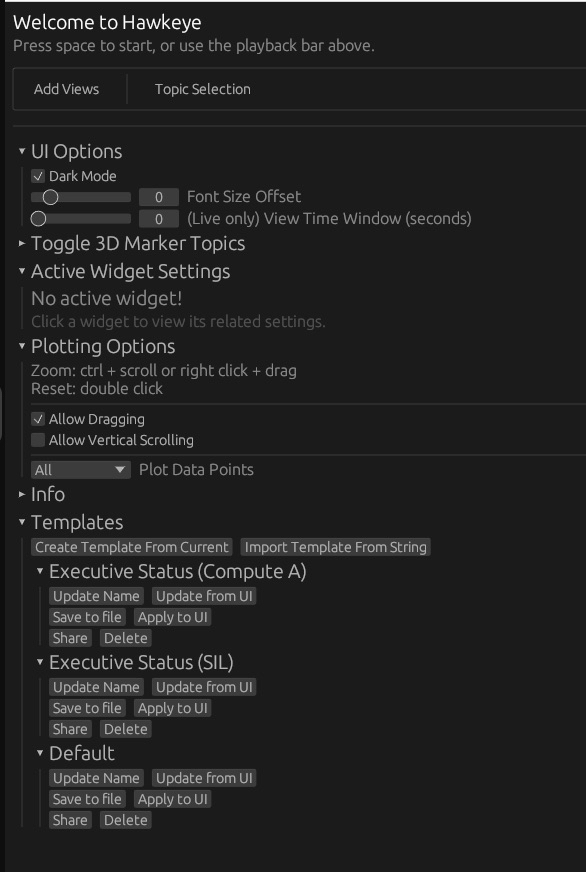 A partner joined me on the Hawkeye project and helped enable both video in web, and refactored so the UI was modular and rearrangable. Building on that, I created a templating system that would allow you to save UI configurations, persist them between sessions, and share them via a raw string or a file.