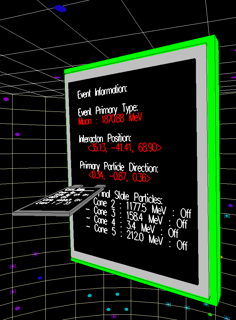 For most of my time I collaborated with Professor Kate Scholberg, of the Duke High Energy Neutrino Physics Group, on a VR visualization and fitting application for data coming out of the Super-Kamiokande neutrino detector. I started from scratch and developed the application fully with the Syzygy SDK providing an easy interface for the distributed rendering inherent in our VR system.