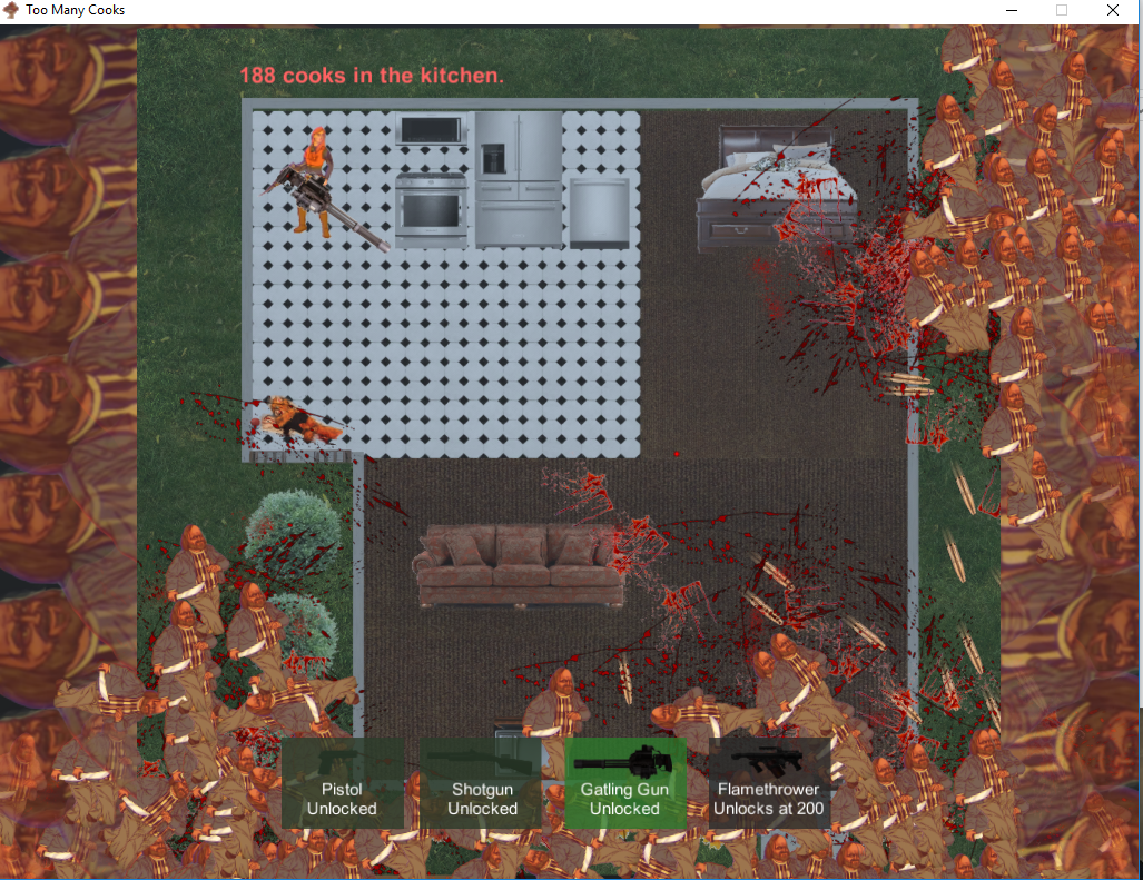 Ludum Dare is a weekend-long hacakthon for game developers, with the challenge of making a game inspired by the event’s chosen theme. For Ludum Dare 42 it was “running out of space”, which made me think of tribbles’ exponential growth. I’d recently stumbled back upon the “Too Many Cooks” Adult Swim short, put two and two together, and eventually was done with this monstrosity.